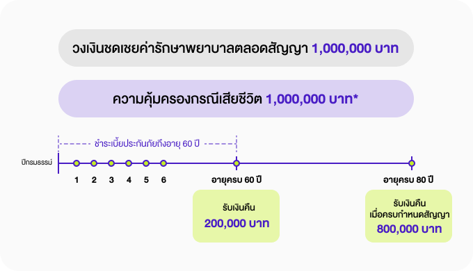 *รับเงินคืนเมื่อสิ้นปีกรมธรรม์ตามร้อยละของทุนประกันภัยข้้างต้น